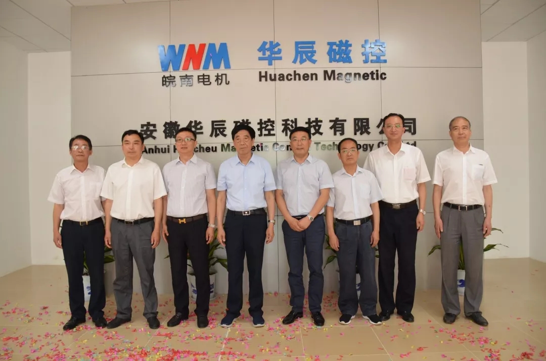 6月16日上午,安徽華辰磁控科技有限公司揭牌儀式在涇縣經(jīng)濟開發(fā)區(qū)高新企業(yè)創(chuàng)業(yè)園舉行,縣委副書記、縣長施懷中,縣人大常委會主任、縣工業(yè)提速大會戰(zhàn)指揮部政委左銀海出席并為公司開業(yè)揭幕,副縣長馮曉堯為儀式致辭。安徽皖南電機股份有限公司董事長陳根喜,黨委書記、副董事長管兵,副董事長、總經(jīng)理陳學鋒等高層領導及上海眾辰電子科技有限公司等相關單位和銷售公司經(jīng)理們共同參加了揭牌儀式。